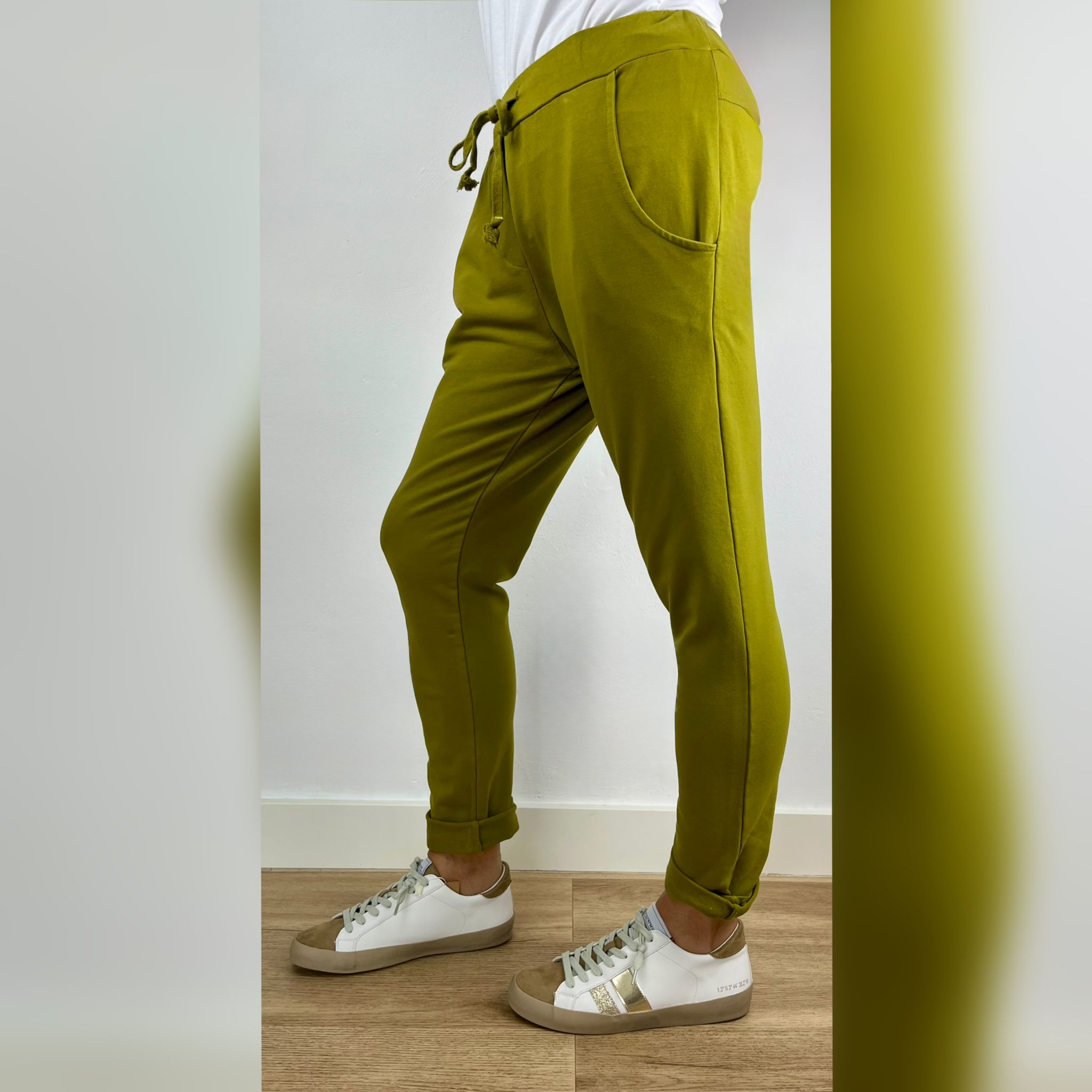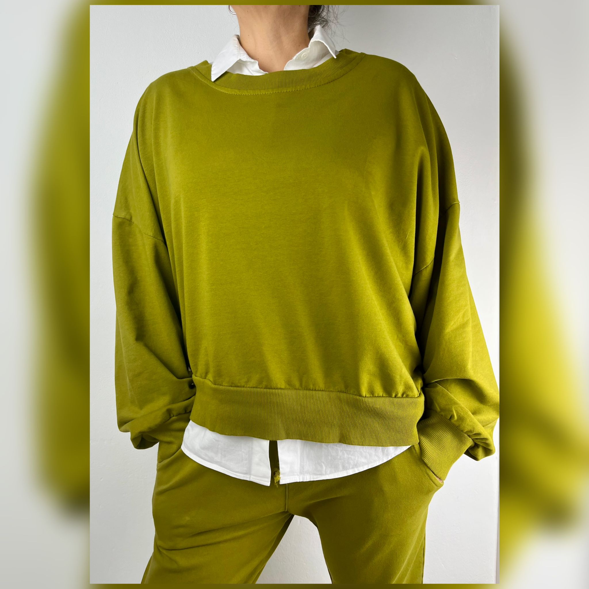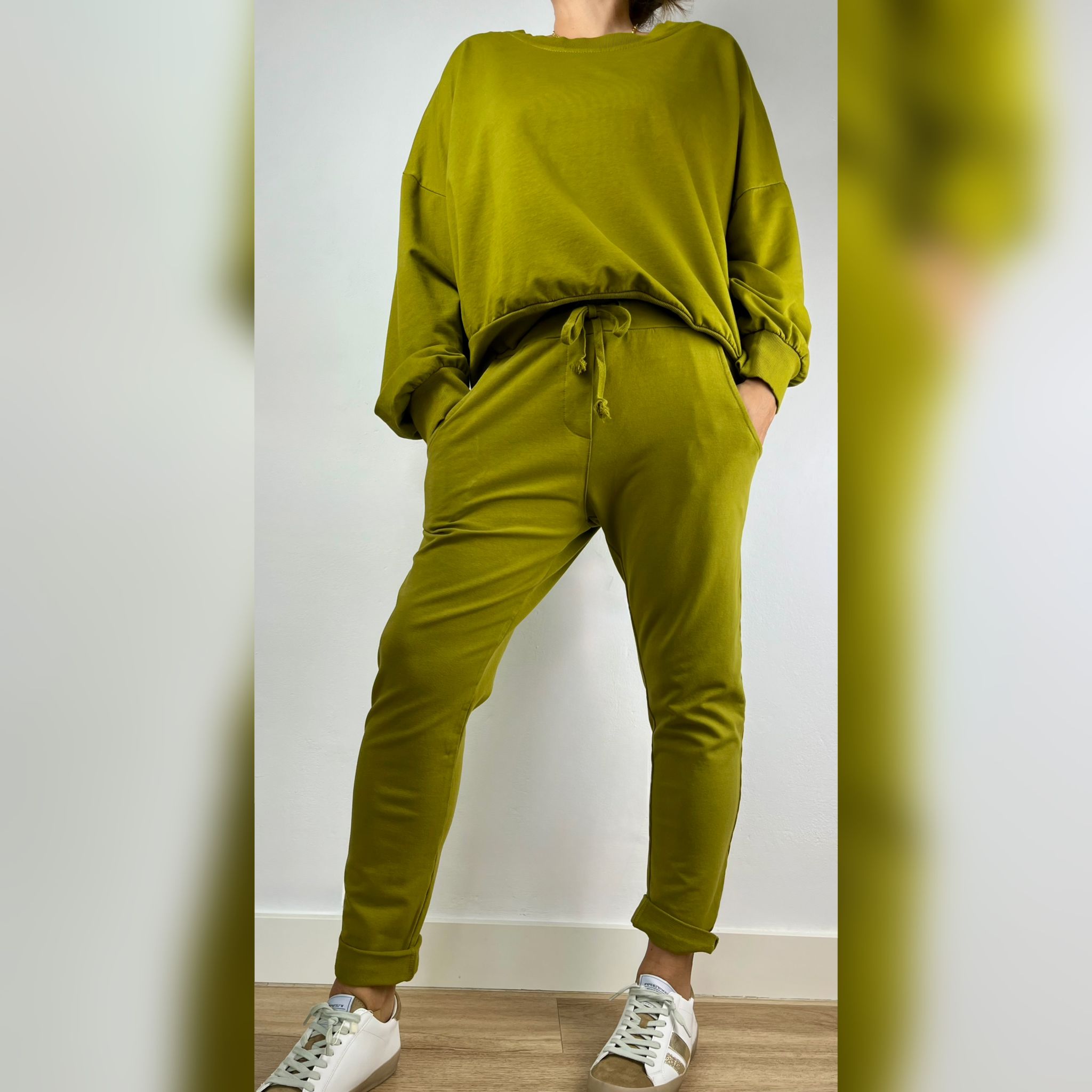 Este chándal sin capucha destaca por su tono pistacho, un color vibrante y actual que aporta frescura a cualquier look. Confeccionado en tejido suave y cómodo, ofrece una sensación ligera al vestir, perfecta para el día a día.