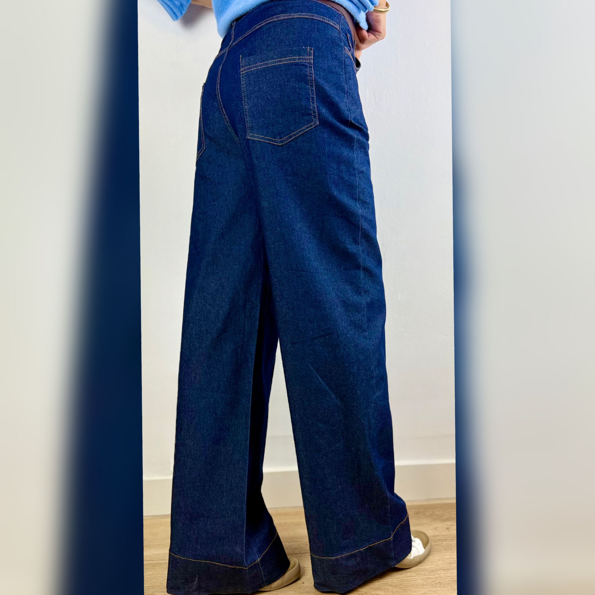 Pantalón tejano confeccionado en denim , diseñado para ofrecer comodidad y un acabado moderno. Destaca por su raya marcada en la parte delantera de la pierna, que estiliza la figura y aporta un toque elegante al clásico vaquero. Incorpora bolsillos funcionales, combinando practicidad y estilo. Una prenda versátil, perfecta para looks casuales o más arreglados según cómo se combine. Cinturón incluido.